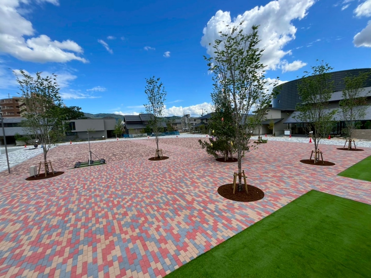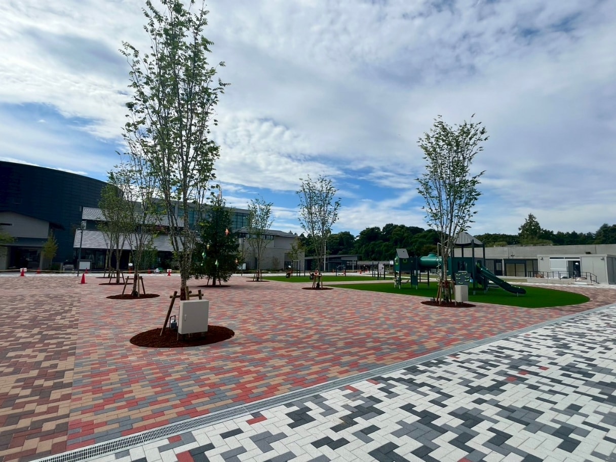 - インターロッキング舗装の870㎡。キッチンカーやマルシェ開催に。